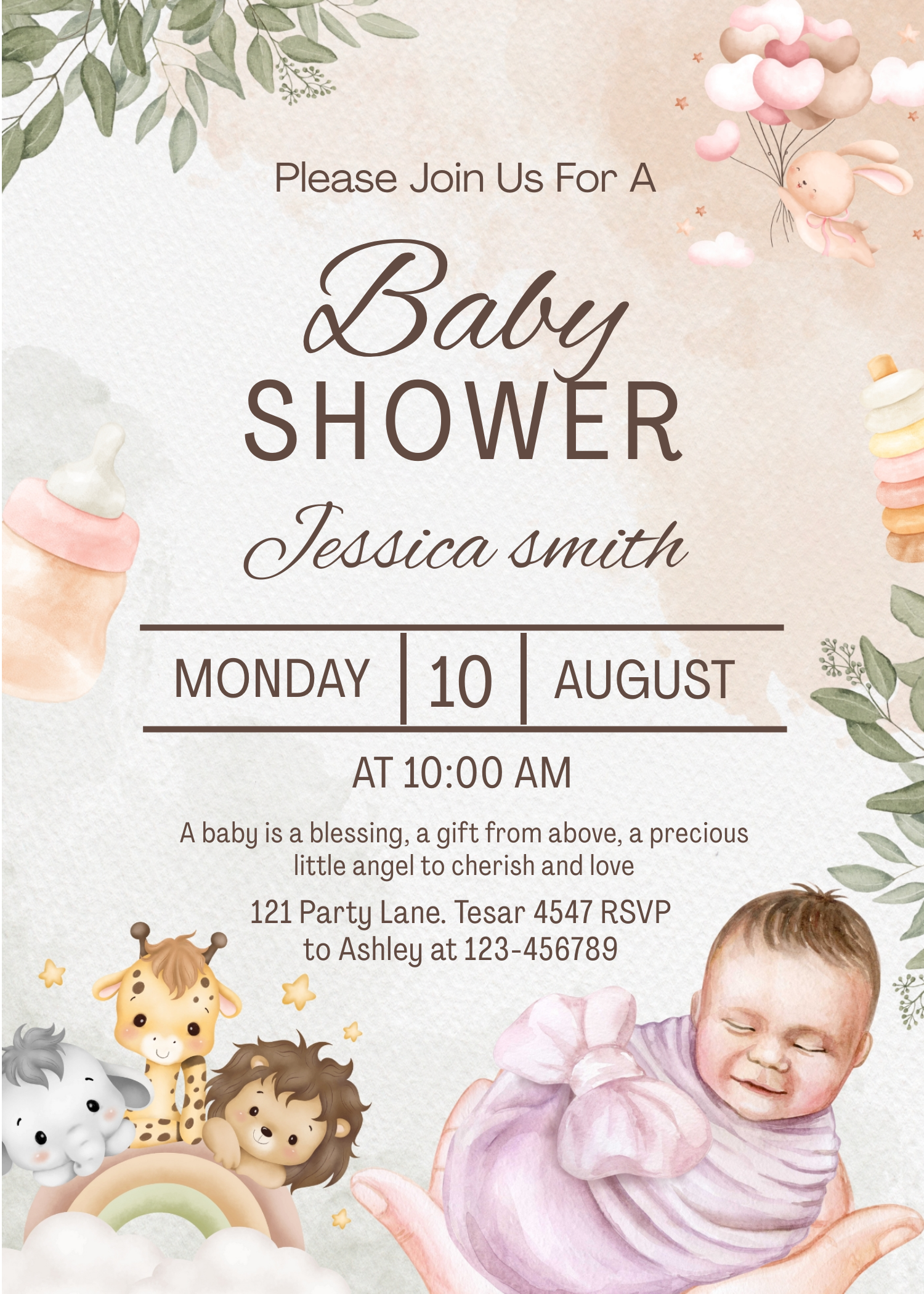 Celebrate your little one’s arrival with this beautifully designed Baby Shower Invitation! Featuring soft pastel tones, delicate decorations, and heartwarming illustrations, this invitation adds a touch of elegance to your special day. 🎀👶✨